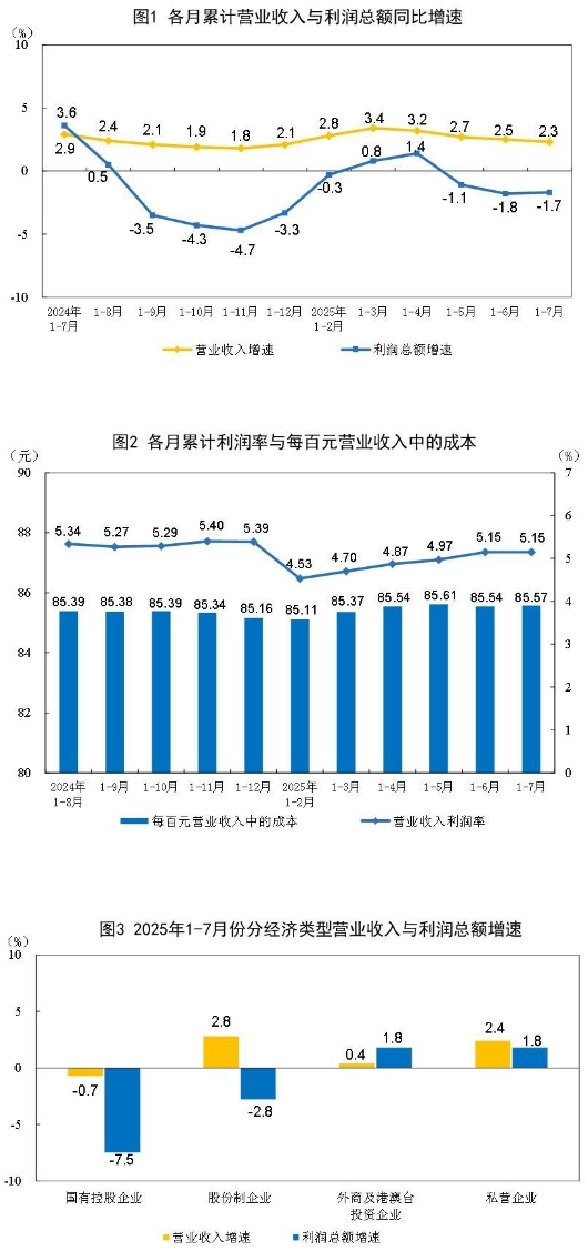 7月份,規模以上工業(yè)企業(yè)利潤同比下降1.5%。